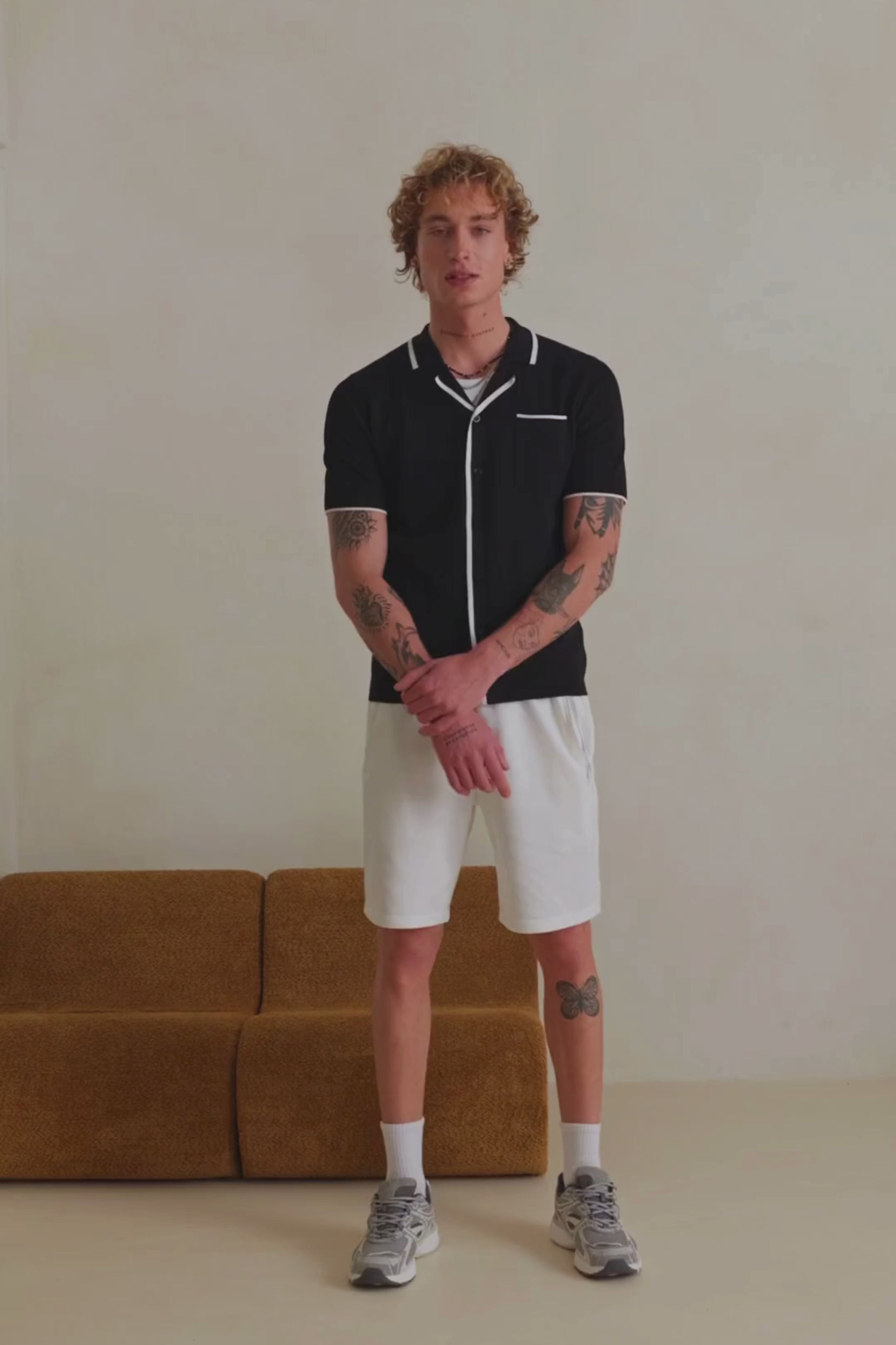 Ensemble chemise / short Padar - Blanc cassé / noir